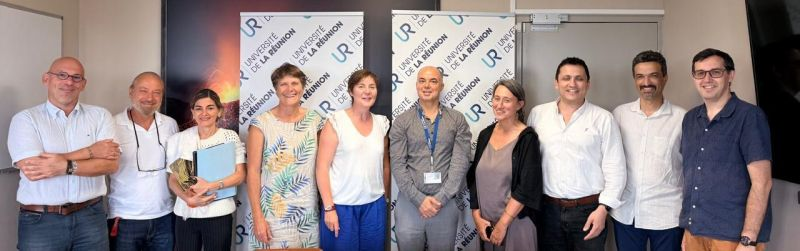 Jean-Philippe Malet (Data Terra), Christophe Porlier (U. Réunion), Anne-Françoise Zattara (U. Réunion) Aurélie Sand (Data Terra) Anne Puissant (Data Terra), Jean-Francois Hoarau (Président de U. réunion) Isabelle Biagiotti (Data Terra), Dani OSMAN (U. Réunion), Fabrice Fontaine (OSU Réunion), Guillaume Payen (OSU Réunion)