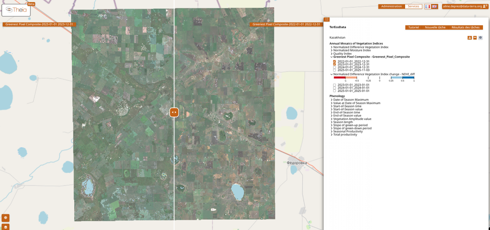 Le service constitue un outil pour diagnostiquer l’état écologique d’un territoire dans un contexte climatique en pleine mutation. Il permet de quantifier précisément la réponse des écosystèmes (prairies, forêts, zones humides) aux variations du climat par exemple en exploitant 10 ans d’archives Sentinel-2. Il facilite notamment l’étude de la phénologie (dates de verdissement, pics de croissance), marqueur critique du réchauffement global.